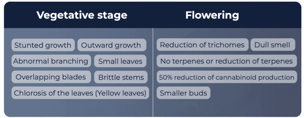 Hop Latent Viroid is a silent viroid, meaning that this viroid may or may not show early visual clues from its presence. Some physical symptoms in Cannabis plants are: